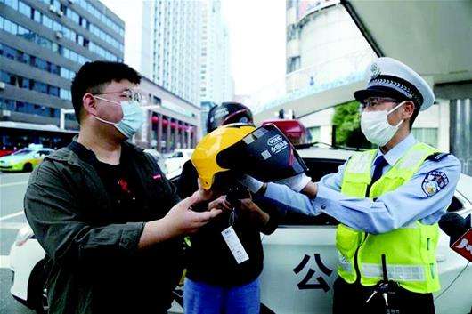 員工上下班騎電動車時佩戴安全頭盔。 在這里我們